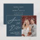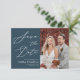 Dusty Blue Elegant Script Moderno Foto Minimalista Casamento Salve O Cartão De Convite De Data. Avise sua família, amigos e colegas que você marcou uma data para sua celebração de casamento com este casamento elegante, na moda e moderno, salve o cartão de convite. Todos os textos estão pré-organizados para que você personalize fácil e rapidamente com seus próprios detalhes.