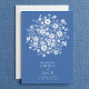 Make a beautiful first impression with this dusty blue Save the Date card, featuring a delicate cluster of white botanical flowers set against a rich blue background. Elegant typography highlights your names and wedding date, creating a timeless look that suits classic, modern, and romantic wedding themes. Perfect for setting the tone for a floral celebration, this design coordinates effortlessly with blue and white wedding stationery suites.