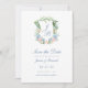 Reserve A Data Dusty Blue Floral Crest Casamento Salvar Data
