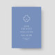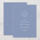 Chic com elegância jovem. Este casamento empoeirado, azul e branco, salvo o cartão de data, exumenta um tom fresco, moderno e jovem. A frente do cartão inclui um conjunto contemporâneo de fontes brancas e um monograma de casais florais, contra um fundo azul empoeirado. Monograma floral se repete no fundo.