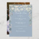 Uma elegante flor silvestre e lamparinas náuticas florais e lanternas de cordas salvou o cartão de encontro com seus detalhes de celebração, em uma elegante tipografia branca sobre um fundo azul poeirento de na moda. Com sua foto especial no verso. Projetado por Thisnotme©