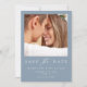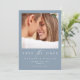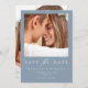 Capture a sua história de amor com esta Foto Azul Dusty Casando Salve a Data, misturando caligrafia elegante com um design minimalista e moderno que destaca sua foto favorita. Perfeito para um anúncio de casamento inspirado em ventre, este cartão simples, mas sofisticado, compartilha facilmente os seus detalhes especiais do dia com amigos e familiares.