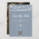 A string azul empoeirada acende o script moderno Salve o Modelo de data para que você personalize. Adicione sua bela foto ao fundo do Convite/Anúncio.
