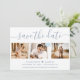 Elegante foto de casamento azul empoeirada salve o cartão de data com uma fonte moderna e uma colagem de fotos. Personalize facilmente este cartão com suas imagens e detalhes de casamento, incluindo um site de casamento, se aplicável.