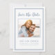 Moderno e simples Salve o design de fotograma de data apresenta sua imagem de noivado favorita emoldurada por um quadro azul empoeirado em um fundo branco nítido. Personalize e compartilhe seus detalhes de noivado e casamento com seus convidados em letras azuis e roteiro. A design é completada com um quadro duplo moderno em azul empoeirado. O design de configuração de retrato paisagístico (a largura é maior que a altura) funciona perfeitamente com fotos próximas ou retangulares de você e do seu noivo em um local cênico. Use sua imaginação e escolha seu favorito! Entre em contato com invitationsuites@gmail.com com perguntas ou solicitações personalizadas.