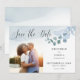 Elegante salve o cartão de data com fotos personalizadas, folhas de eucalipto, letras manuais e lavagem com aquarela. Esse delicado design tem um verde-aquarela e folhagem em tons de cinza azul empoeirado e verde. Salve a data está escrita em lindas caligrafias e a modelo está configurada para você personalizar. Um design natural, rústico e não-floral, que se adapta a uma variedade de temas, desde jardim clássico até boho orgânico e mínimo moderno. Por favor, navegue na minha loja, na empoeirada coleção de eucaliptos, para coordenar convites, cartões de gabinete e acessórios de correio.