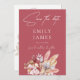 Anuncie seu dia especial com esse casamento floral de rosa boho empoeirado salve o cartão de data. Com capim romântico, floração de aquarela e tipografia elegante, esta design é perfeita para comemorações rústicas, boêmicas ou casamentos outono.