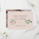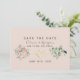 Casamento elegante, moderno, de aquarela, rosa floral empoeirado salve o convite de data com corda de ouro, flores de aquarela, eucalipto verde e foto personalizada de volta.