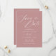 Salve as datas simples e elegantes com o texto "Salvar a Data" em um script inspirado na safra. Fundo colorido cor-de-rosa-mauve mutado.
