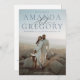 Este chic e elegante Salve a Data Card apresenta uma foto de página de cheio e um layout sofisticado com os nomes de casais grandes e uma bela fonte de script lendo "E" conectando seus nomes. A paleta de cores azuis do tipo parece excelente contra fundo do céu, mas pode ser personalizada para funcionar bem com sua foto. A parte traseira desta foto de na moda para salvar o cartão de data tem um espaço para adicionar detalhes extras ou incluir o site do casamento.