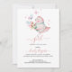 É uma garota, um texto personalizável para um convite de chá de fraldas. Galinha-bebê bonita e colorida com borboletas, ilustração moderna de aquarelas.