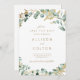 Cartões salve a data russos apresentam folhas falsas de folha de ouro, cor d'água, verde botânico eucalipto e letra chic moderna, elegante e romântico, excelente para casamento rústico moderno, casamento botânico e casamento do boho country. Veja todas as peças correspondentes na coleção.