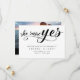 Negra minimalista moderna, disse que sim, o roteiro salve o cartão de data. Este cartão elegante apresenta um roteiro manuscrito a preto com coração vermelho agudo acima do texto 'ela disse sim' sobre fundo branco e detalhes do casamento e nomes escritos em letras maiúsculas a preto.Adicionar website e foto ao verso do cartão. Para editar este modelo, clique em personalizar mais.