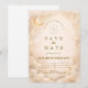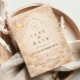 Um desenho celestial luminoso apresentando delicadas luas crescentes e estrelas de constelações espalhadas por um fundo de pergaminho quente. Uma moldura dourada refinada emoldura a composição, enquanto a tipografia elegante cria um ponto focal gracioso digno de um marco tão significativo. Os tons suaves de marfim e champanhe dão a toda a peça um brilho radiante e atemporal. Perfeito para uma celebração de quinceañera que se sente romântica, elevada e tocada pela luz das estrelas.