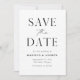 Anuncie seus futuros núpcias em estilo com nosso elegante e moderno cartão de data. A data não-fotográfica salva os recursos "Salvar a Data" em fontes de script e serif pretas com um fundo branco com sutis manchas pretas. Personalize a frente do cartão de data, adicionando seus nomes, data do casamento, local do casamento e outros detalhes do casamento. O mínimo de salvamento da placa de data reverte para incluir um fundo branco com manchas pretas. Salve perfeitamente a data para casamentos formais e casuais modernos!