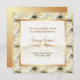 Sutil e elegante em damasco dourado, com uma bela profusão de rosas brancas na fronteira. Personalize frente e verso com as informações do seu Chá de panela.