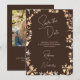 This stunning Autumn Wedding Save the Date has delicate yet vibrant Watercolor Wildflowers in a Copper Flame effect that almost seems to glow! The Modern Elegant Handwritten Script in Ivory is showcased by a rich Coffee Brown background. Add Your Photo to the back, with the template. (This is especially suited for an evening autumn wedding.) It will leave quite the impression!