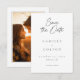 Celebrate your love with this minimalist black and white wedding photo save the date card design. It's perfect for an elegant autumn ceremony. This earthy, modern look offers a warm and sophisticated feel for your autumn hue wedding. Created by Simply Farmhouse Press.