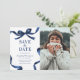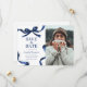 Announce your upcoming graduation in timeless style with this elegant Save the Date announcement. Featuring a photo of the graduate on a clean white background, framed by a stylish blue watercolor bow and ribbon border, this design perfectly blends classic sophistication with modern charm.