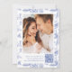Reserve A Data Elegant Blue Chinoiserie Floral QR Code Wedding