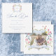 Step into a world of timeless elegance with our exquisite Baroque wildflower wedding save the date card. A regal crest, adorned with your initials, sits at the center of this design, encircled by soft pastel watercolor blooms and a delicate ribbon. A refined dusty blue border encloses your wedding details in sophisticated harmony. Your favorite couple photo takes center stage on the back, enclosed in a regal floral crest. Perfect for couples who seek a design that whispers luxury, romance, and the charm of old-world grandeur. Let your wedding begin with a design as breathtaking as the day itself. Created by Simply Farmhouse Press.