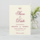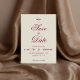 An elegant, classic Save the Date featuring a delicate bow graphic and rich burgundy script on soft cream paper. Perfect for couples planning a timeless and formal wedding.