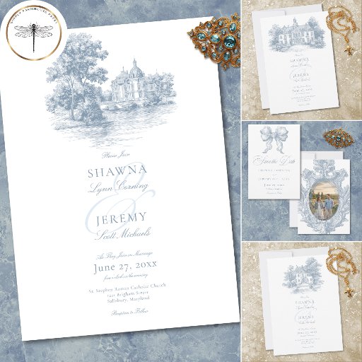 Elegant Dusty Blue Toile French Manor WeddingCriado por Kathe Santillo