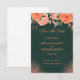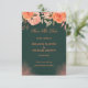 A refined and romantic design featuring a deep green background accented with soft peach and coral floral elements. The elegant typography and balanced composition create a luxurious and timeless look. The contrast between the rich backdrop and delicate flowers adds sophistication, making it perfect for announcing a special occasion with a graceful, nature-inspired aesthetic.