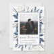 Share your exciting news with this elegant navy blue and silver watercolor floral photo Save the Date card. Featuring a beautiful floral botanical design with soft watercolor details and romantic calligraphy script, this card is the perfect blend of modern style and timeless elegance.
