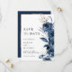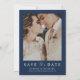 Reserve A Data Elegant Modern Navy Blue Floral & Photo Wedding