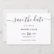 Complement your purple wedding party with these elegant wedding save the date cards featuring a modern script font. Matching items available.