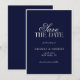 Create your own custom wedding save the dates in a luxurious old money style. Add your personalized details announcing your wedding day in elegant, timeless typography featured here in navy blue and cream color design.