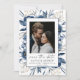 Share your exciting news with this elegant navy blue and silver watercolor floral photo Save the Date card. Featuring a beautiful floral botanical design with soft watercolor details and romantic calligraphy script, this card is the perfect blend of modern style and timeless elegance.