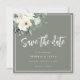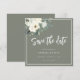 This rustic elegant 'Save the Date' card features a neutral watercolor floral design with green leaves. Olive green background with a classic off white border.