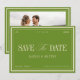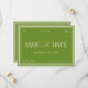 A modern green and ivory wedding save the date featuring refined typography, clean borders, and a timeless elegant layout. Perfect for garden weddings, spring and summer celebrations, and couples who love a chic, minimal, and sophisticated aesthetic. Personalize the names, date, and location to create a stylish announcement that beautifully introduces your wedding. A versatile and classic choice for any elegant event.