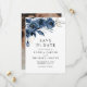 Share your exciting news with this elegant navy blue and silver watercolor floral photo Save the Date card. Featuring a beautiful floral botanical design with soft watercolor details and romantic calligraphy script, this card is the perfect blend of modern style and timeless elegance.