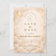 A refined celestial design featuring delicate crescent moons, scattered constellation stars, and a warm parchment-toned background. A thin gold border frames the layout, while elegant typography creates a timeless, sophisticated composition. The subtle vintage texture and balanced spacing give this piece a romantic, storybook feel without overwhelming the details. Perfect for couples who love classic elegance with a soft cosmic touch.