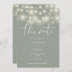 This elegant sage green save-the-date invitation, featuring pretty string lights, can be personalized with your information in chic typography with your wedding website QR code and details on the reverse. Designed by Thisisnotme©