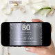 Um elegante Salve a Data para uma festa de aniversário 80. Um fundo metálico moderno, falso e prateado, decorado com poeira falsa. Personalize e adicione uma data e nome/idade. O texto: Salvar a Data é gravado com um script de estilo com letra de tendência grande. Número 80 com uma fonte no estilo do balão.