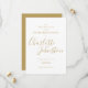 Elegante convite de aniversário de qualquer idade com assinatura em ouro, apresentando um nome com assinatura em letra dourada elegante. Personalize com as informações do seu evento de celebração especial em letras douradas chiques. Criado por Thisisnotme©