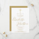 Elegante convite de batismo ou crisma com assinatura dourada para salvar a data, apresentando uma assinatura elegante com nome em letra dourada. Personalize com as informações especiais do seu batismo ou crisma em letras douradas elegantes neste design neutro em termos de gênero. Criado por Thisisnotme©
