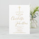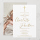 Elegante convite de batismo ou crisma com assinatura dourada, apresentando um nome em letra cursiva dourada elegante. Personalize com as informações especiais do seu batismo ou crisma em letras douradas elegantes e foto no verso. Criado por Thisisnotme©