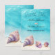 Um sofisticado design de casamento de praia, com conchas de aquarela e pérolas em um fundo branco limpo. Script elegante e fontes clássicas de serif criam um aspecto de eterno, perfeito para um casamento costeiro, de destino ou de temas náuticos. Os tons pastéis suaves evocam uma atmosfera oceânica romântica e serena.