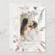 Este elegante design apresenta buquês florais de piche marrom, verde-musgo e creme boêmico. Para melhorar os detalhes do seu dia, a escritura inclui a caligrafia caprichosa e a sua bela fotografia contra um quadro transparente de borda caída. Inclua seus detalhes pessoais na frente com suas iniciais de monograma na parte traseira do cartão, e você fez dele seu próprio.