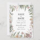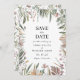 Botânica Elegante Guarda A Data. Apresentando um na moda de design de madeira pintada à mão de rosa poeirentos poeirentos e de pêssego, lindas flores de mauve e rosa pinceladas, e adoráveis figuras de sábio e terracota botânica, estes elegantes salvadores de datas reúnem uma rica paleta de cores de destino tropical, maravilhosamente arrumadas em um quadro na moda e moderno. Perfeito para casais que procuram uma maneira simples mas na moda de marcar o dia especial deles, estes anúncios guardados na data certamente farão o dia do seu casamento inesquecível.