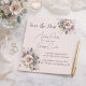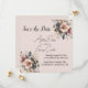 Elegante Save the Date de casamento floral rosa, azul e creme