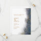 Defina o tom do seu casamento com este incrível cartão de Save the Date. Com um design de mármore azul marinho luxuoso acentuado com detalhes dourados cintilantes, este cartão exala elegância e sofisticação. A tipografia moderna e o layout elegante tornam-no uma escolha perfeita para casamentos formais ou contemporâneos. Personalize-o com a data e detalhes do seu casamento para garantir que seus convidados marquem suas agendas para o seu dia especial.