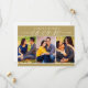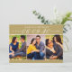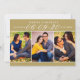 Estes cartões de anúncio de casamento modernos e elegantes incluem três fotos de noivado de 2 x 3" com a data apresentada em escrita elegante. Personalize o texto do modelo de cartão na frente e no verso do cartão para o seu grande dia. O fundo dourado antigo e a cor do texto podem ser personalizados para combinar com o esquema de cores do seu casamento.