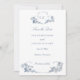 Elegante quadro floral azul empoeirado ornamentado adaptado da gravura francesa clássica do século 18. Inclui o modelo de foto opcional no verso.