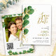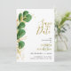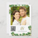 Crie cartões elegantes, verdes esmeraldas e dourados, guardados com folhagem de eucalipto. Esta design é perfeita para o tema do casamento botânico, e para o casamento do tom de joia. Os modelos facilitam a digitação de nomes, data e local, site e o upload de sua foto no verso. Você também pode adicionar um código QR ao seu site de casamento - certifique-se de adicionar seu site antes de fazer o pedido para que o código QR funcione como deve.